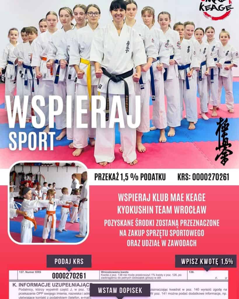 Wasze wsparcie ma ogromne znaczenie i jesteśmy wdzięczni, że możemy liczyć na tak wspaniałą społeczność! Jeżeli ktoś chciałby jeszcze przekazać 1,5 % ze swojego rozliczenia podatku, wystarczy wypełniając PIT, wpisz numer KRS: 0000270261 koniecznie z dopiskiem celu szczegółowego: KYOKUSHIN WROCŁAW 11783.